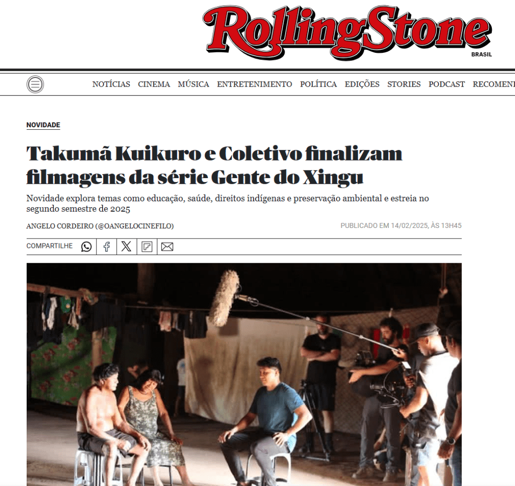 a revista rolling stone destacou a produção da série documental gente do xingu. com direção de takumã kuikuro, a série tem o roteiro assinado por daniel massa.