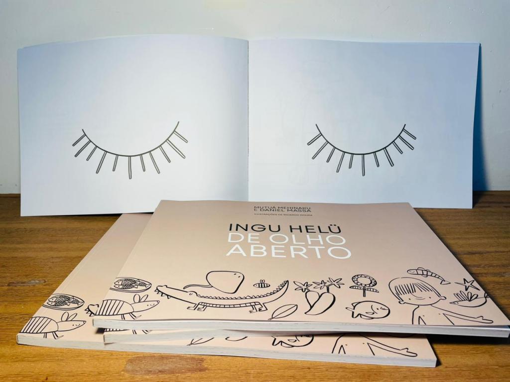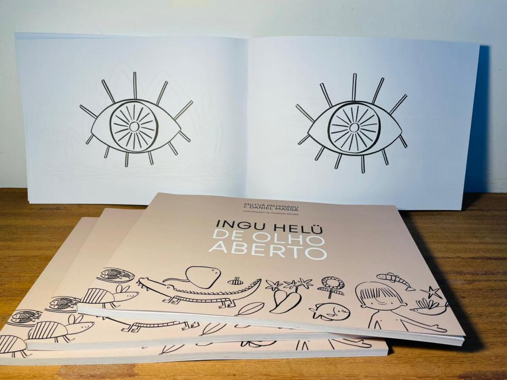este é ingu helü: de olho aberto. há um ano eu estava no xingu escrevendo com mutuá mehinaku as primeiras linhas, em português e em karib, desse livrinho. a ideia era criar algo que partisse de dentro da aldeia para fora, e não o contrário, como costuma acontecer. logo logo ricardo moura chegou junto e começou a pensar nas ilustrações e aí a coisa voou.